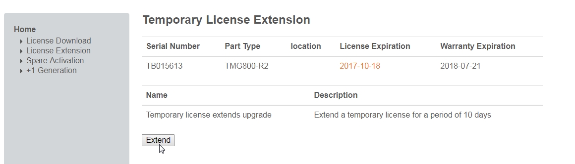 Click Transfer License. This will copy all licensed features from 'Unit Serial Number' to 'Spare Unit Serial Number' and will activate the spare.