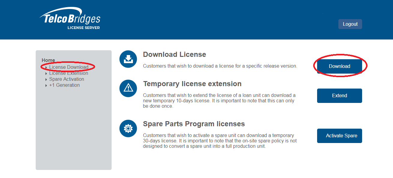 For partners who do not have log in credentials for the TelcoBridges License Server, please contact TelcoBridges TB Support.
