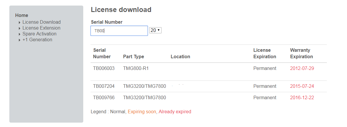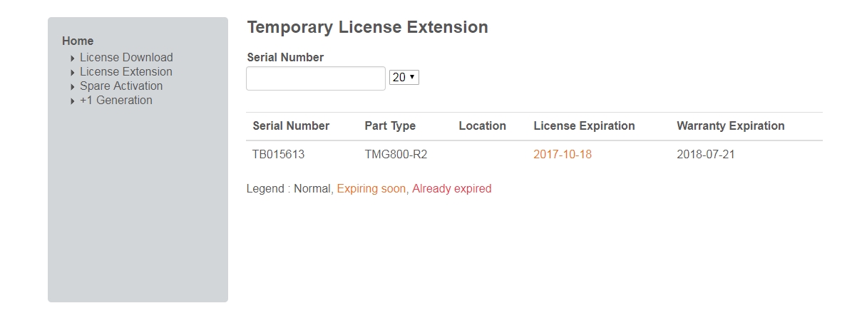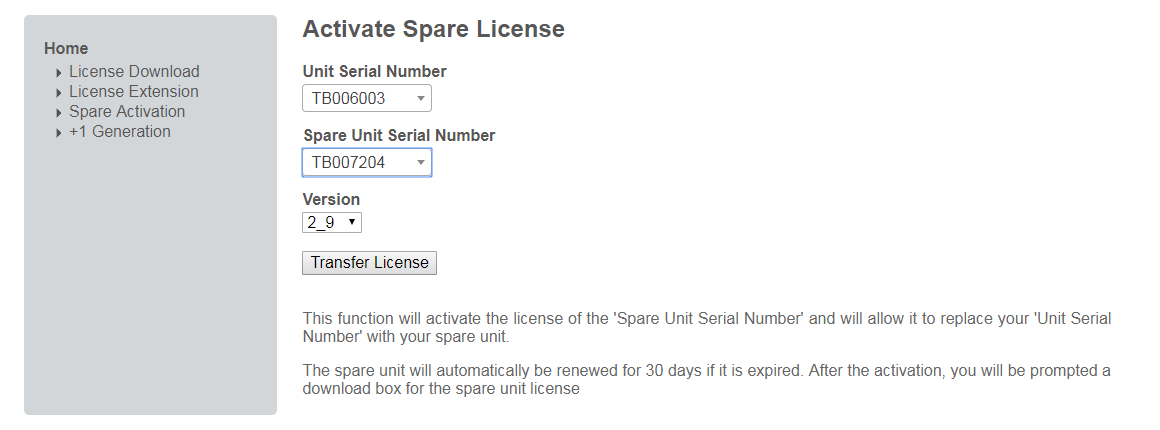 This function will activate the license of the 'Spare Unit Serial Number' and will replace the main unit with your spare unit.