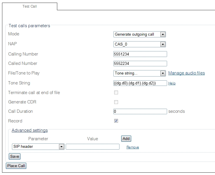 Test calls can be used to verify many aspects of the system, such as system resources, connection points, and more. Two types of test calls can be run: