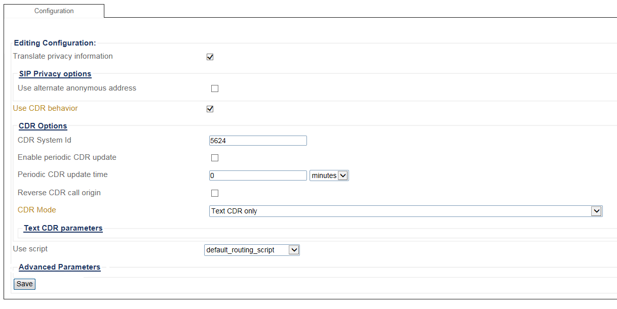 These filtering options are global to the Tmedia system. For a finer-grain control over call recording, routing scripts can be used.